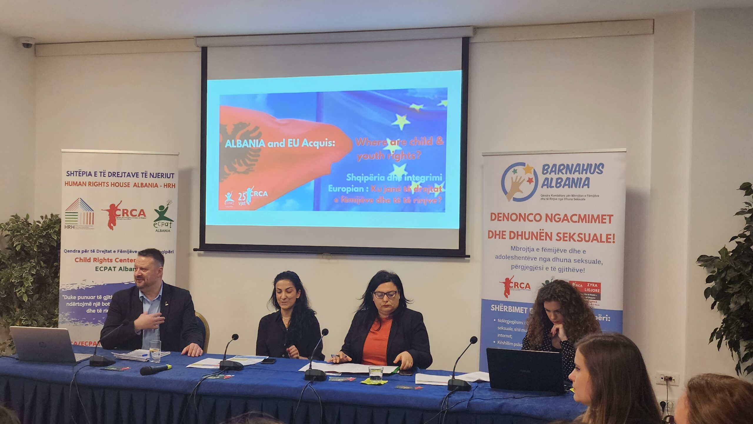 Përfaqësuesit e Ministrisë së Drejtësisë dhe Ministrisë së Shëndetësisë dhe Mbrojtjes sociale informuan të gjithë pjesmarrësit, që vinin nga sektori i shoqërisë civile, në lidhje me procesin e screeining Shqipëri-BE dhe çfarë pritet të ndodhë në muajt në vijim. Ekspertët e CRCA/ECPAT Shqipëri në prezantimet e tyre u ndalën në aspektet kryesore të Acquis për fëmijët dhe të rinjtë, si dhe mundësive që paraqiten përpara shoqërisë civile për t’u bërë pjesë aktive e këtij procesi.